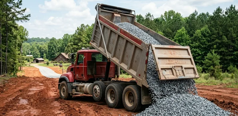 Gravel delivery in Laurens County, Georgia is not just a logistics question — it is a materials and application question. The right gravel for a base layer is not the right gravel for a surface layer. The right quantity for a 200-foot driveway is not the right quantity for an 800-foot farm road. And gravel that is delivered and dumped in a pile is not the same as gravel that is delivered, spread evenly across the surface, and finish-graded to the correct crown profile.