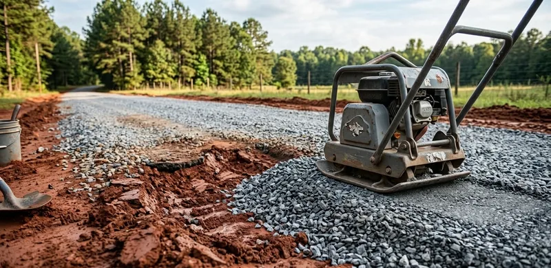 In Laurens County, Georgia, ruts in a gravel driveway are corrected by motor grading — pulling accumulated gravel from the edges back toward the center and re-compacting the surface. Deep ruts that have exposed the clay base require adding fresh crusher run before regrading. Persistent rutting in the same locations usually indicates a base failure or drainage problem that will continue to cause ruts unless the underlying condition is addressed, not just the surface symptoms.